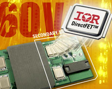 如果將IRF6648用于48V輸入、12V輸出的240W隔離式轉(zhuǎn)換器的次級(jí),功率密度可由每平方英寸72W增加15%。這完全歸功于IR DirectFETMOSFET 封裝技術(shù)具有的良好散熱設(shè)計(jì)和雙面冷卻能力。